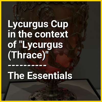 The cup is also a very rare example of a complete Roman cage-cup, or diatretum, where the glass has been painstakingly cut and ground back to leave only a decorative "cage" at the original surface-level. Many parts of the cage have been completely undercut. Most cage-cups have a cage with a geometric abstract design, but here there is a composition with figures, showing the mythical King Lycurgus, who (depending on the version) tried to kill Ambrosia, a follower of the god Dionysus (Bacchus to the Romans). She was transformed into a vine that twined around the enraged king and restrained him, eventually killing him. Dionysus and two followers are shown taunting the king. The cup is the "only well-preserved figural example" of a cage cup.