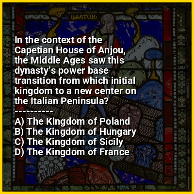 ⭐ In the context of the Capetian House of Anjou, the Middle Ages saw this dynasty’s power base transition from which initial kingdom to a new center on the Italian Peninsula?