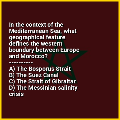 ⭐ In the context of the Mediterranean Sea, what geographical feature defines the western boundary between Europe and Morocco?