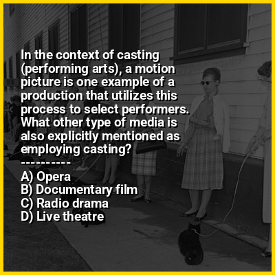⭐ In the context of casting (performing arts), a motion picture is one example of a production that utilizes this process to select performers. What other type of media is also explicitly mentioned as employing casting?