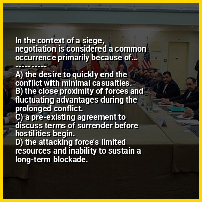 โญ In the context of a siege, negotiation is considered a common occurrence primarily because ofโ€ฆ