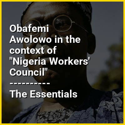 Obafemi Jeremiah Oyeniyi Awolowo (6 March 1909 – 9 May 1987) was a Nigerian politician who served as the first Premier of the Western region of Nigeria. He was known as one of the key figure towards Nigeria's independence movement from 1957 to 1960. Awolowo founded the Yoruba nationalist group Egbe Omo Oduduwa as well as the Premier of the Western Region under Nigeria's parliamentary system from 1952 to 1959. He was the official opposition leader in the federal parliament to the Balewa government from 1959 to 1963.