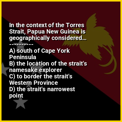 ⭐ In the context of the Torres Strait, Papua New Guinea is geographically considered…