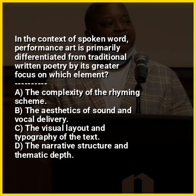 ⭐ In the context of spoken word, performance art is primarily differentiated from traditional written poetry by its greater focus on which element?