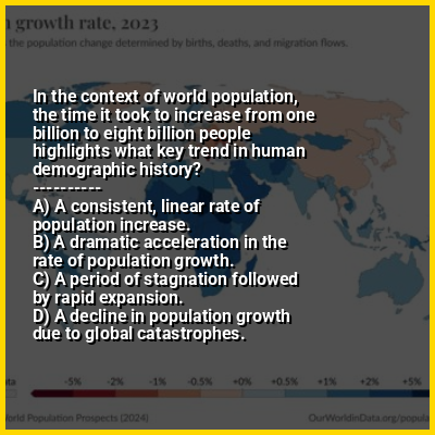 ⭐ In the context of world population, the time it took to increase from one billion to eight billion people highlights what key trend in human demographic history?