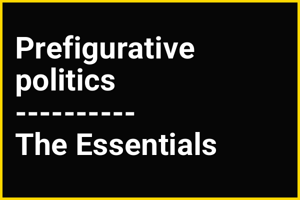 Prefigurative politics are modes of organization and social relationships that strive to reflect the future society being sought by a group. In practice, they involve building a new society "within the shell of the old" by living out the values and social structures the group desires for the future.