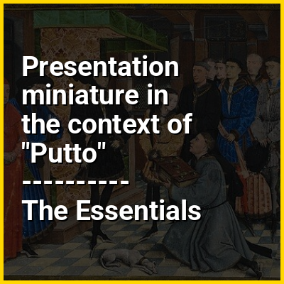 A presentation miniature or dedication miniature is a miniature painting often found in illuminated manuscripts, in which the patron or donor is presented with a book, normally to be interpreted as the book containing the miniature itself. The miniature is thus symbolic, and presumably represents an event in the future. Usually it is found at the start of the volume, as a frontispiece before the main text, but may also be placed at the end, as in the Vivian Bible, or at the start of a particular text in a collection.