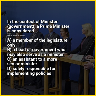A prime minister, also known as a chief of cabinet, chief minister, first minister, minister-president or premier, is the head of the cabinet and the leader of the ministers in the executive branch of government, often in a parliamentary or semi-presidential system. A prime minister is not the head of state, but rather the head of government, serving as the chief of the executive under either a monarch or a president in a republican form of government.