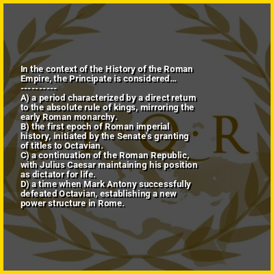 ⭐ In the context of the History of the Roman Empire, the Principate is considered…