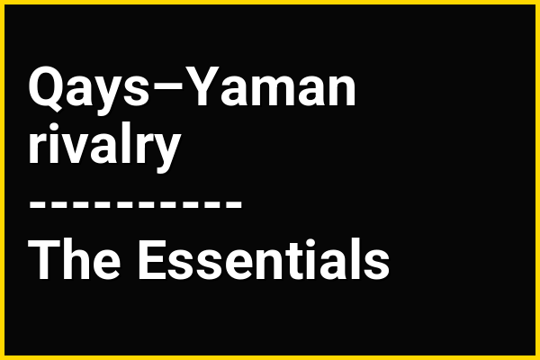 The Qays–Yaman rivalry refers to the rivalry between the tribal factions of Qays–Mudar and the Yaman. The history of the rivalry centers mainly within the armies and administrations of the Umayyad Caliphate in the 7th and 8th centuries, but persisted to varying degrees among the Arabs through Ottoman rule (1517–1918). Membership in either faction was rooted in the genealogical origins of the tribes, real or perceived, which divided them into south Arabian descendants of Qahtan (the Yaman) or north Arabian descendants of Adnan (Qays–Mudar).