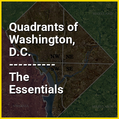 Washington, D.C., is administratively divided into four geographical quadrants of unequal size, each delineated by their ordinal directions from the medallion located in the Crypt under the Rotunda of the Capitol. Street and number addressing, centered on the Capitol, radiates out into each of the quadrants, producing a number of intersections of identically named cross-streets in each quadrant. Originally, the District of Columbia was a near-perfect square but contained more than one settlement; the Capitol was to be the center of the City of Washington. Thus, the Capitol was never located at the geographic center of the whole territory, which was eventually north of the Potomac River, consolidated into one city. (The geographic center was located near the onetime marshy area of the present-day intersection of 17th Street, NW and Constitution Ave.) As a result, the quadrants are of greatly varying size. Northwest is quite large, encompassing over a third of the city's geographical area, while Southwest is little more than a few neighborhoods, large parks, and a military base.