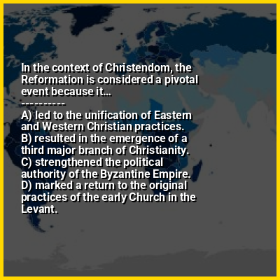 ⭐ In the context of Christendom, the Reformation is considered a pivotal event because it…