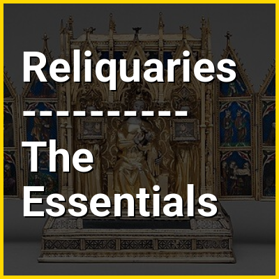 The casket usually stands on straight stumpy feet, and there is a hinged opening to allow access, either one of the panels, but not on the front face, or the wooden bottom; there is usually a lock. The shape possibly developed from a similar shape of sarcophagus that goes back to Etruscan art, or from Early Medieval Insular art, where there are a number of house-shaped shrines, reliquaries or cumdachs ("book-shrines"), with similar shapes. The Monymusk Reliquary is typical of these, having four sloping panels above, so no "gables". A 13th-century example of the fully-sloping type is the chasse of Saint Exupère in Limoges enamel (see gallery of images, below). The word derives, via the French châsse, from the Latin capsa, meaning "box".