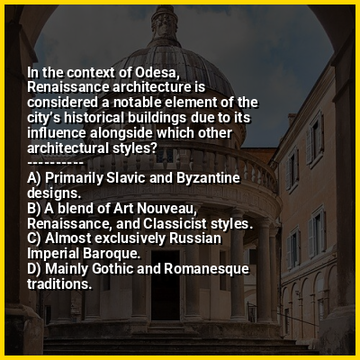 ⭐ In the context of Odesa, Renaissance architecture is considered a notable element of the city’s historical buildings due to its influence alongside which other architectural styles?