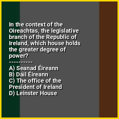 ⭐ In the context of the Oireachtas, the legislative branch of the Republic of Ireland, which house holds the greater degree of power?