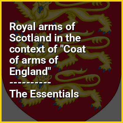 The coat of arms of Scotland, colloquially called the Lion Rampant, is the coat of arms historically used as arms of dominion by the monarchs of the Kingdom of Scotland, and later used within the coat of arms of Great Britain and the present coat of arms of the United Kingdom. The arms consist of a red lion surrounded by a red double border decorated with fleurs-de-lis, all on a gold background. The blazon, or heraldic description, is: Or a lion rampant Gules armed and langued Azure within a double tressure flory-counter-flory of the second.