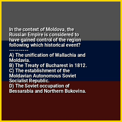 ⭐ In the context of Moldova, the Russian Empire is considered to have gained control of the region following which historical event?