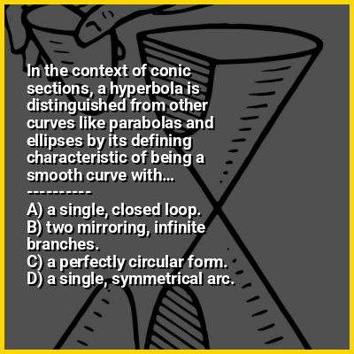 ⭐ In the context of conic sections, a hyperbola is distinguished from other curves like parabolas and ellipses by its defining characteristic of being a smooth curve with…
