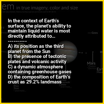 ⭐ In the context of Earth's surface, the planet's ability to maintain liquid water is most directly attributed to…