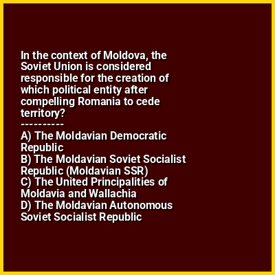 ⭐ In the context of Moldova, the Soviet Union is considered responsible for the creation of which political entity after compelling Romania to cede territory?