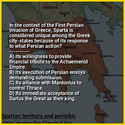 ⭐ In the context of the First Persian invasion of Greece, Sparta is considered unique among the Greek city-states because of its response to what Persian action?