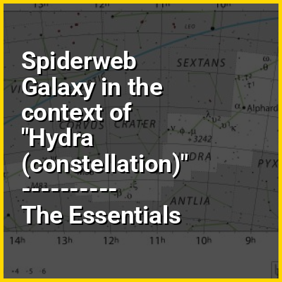 The Spiderweb Galaxy (PGC 2826829, MRC 1138−262) is an irregular galaxy located in the Hydra constellation, with a redshift of 2.156, which is 10.6 billion light years from the Milky Way. It has been imaged by the Hubble Space Telescope on 12 October 2006. It was thoroughly studied through radio astronomy, but it was not until the Hubble Space Telescope took a mosaic of photographs from May 17 to May 22, 2005, that its true nature became known. This was documented for the first time on October 10, 2006, in The Astrophysical Journal Letters, volume 650, number 1. The photography was carried out using an advanced camera for surveys by a team led by George K. Miley of the Netherlands' Leiden Observatory.