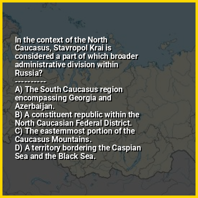 ⭐ In the context of the North Caucasus, Stavropol Krai is considered a part of which broader administrative division within Russia?