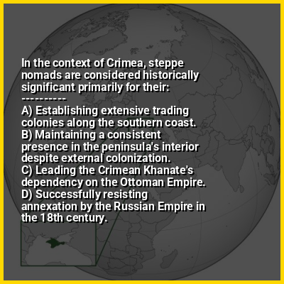 ⭐ In the context of Crimea, steppe nomads are considered historically significant primarily for their: