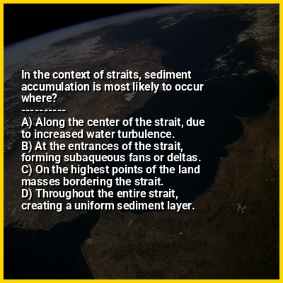 ⭐ In the context of straits, sediment accumulation is most likely to occur where?