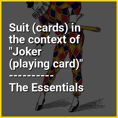 In playing cards, a suit is one of the categories into which the cards of a deck are divided. Most often, each card bears one of several pips (symbols) showing to which suit it belongs; the suit may alternatively or additionally be indicated by the color printed on the card. The rank for each card is determined by the number of pips on it, except on face cards. Ranking indicates which cards within a suit are better, higher or more valuable than others, whereas there is no order between the suits unless defined in the rules of a specific card game. In most decks, there is exactly one card of any given rank in any given suit. A deck may include special cards that belong to no suit, often called jokers.
