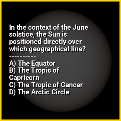 ⭐ In the context of the June solstice, the Sun is positioned directly over which geographical line?