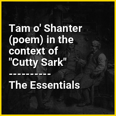 The poem describes the habits of Tam (a Scots nickname for Thomas), a farmer who often gets drunk with his friends in a public house in the Scottish town of Ayr, and his thoughtless ways, specifically towards his wife, who waits at home for him. At the conclusion of one such late-night revel, after a market day, Tam rides home on his horse Meg while a storm is brewing. On the way he sees the local haunted church lit up, with witches and warlocks dancing and the Devil playing the bagpipes. He is still drunk, still upon his horse, just on the edge of the light, watching, amazed to see the place bedecked with many gruesome things such as gibbet irons and knives that had been used to commit murders. The music intensifies as the witches are dancing and, upon seeing one particularly wanton witch in a short dress, Tam loses his reason and shouts, '"Weel done, cutty-sark!" ("weel": well; "cutty-sark": short shirt). Immediately, the lights go out, the music and dancing stop, and many of the creatures lunge after Tam, with the witches leading. Tam spurs Meg to turn and flee and drives the horse on towards the River Doon as the creatures dare not cross a running stream. The creatures give chase and the witches come so close to catching Tam and Meg that they pull Meg's tail off just as she reaches the Brig o' Doon.