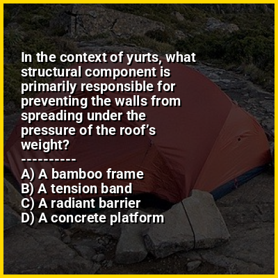 ⭐ In the context of yurts, what structural component is primarily responsible for preventing the walls from spreading under the pressure of the roof’s weight?