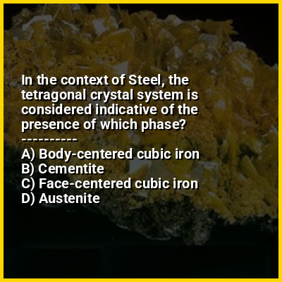 ⭐ In the context of Steel, the tetragonal crystal system is considered indicative of the presence of which phase?