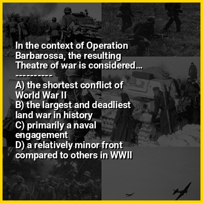Operation Barbarossa was the invasion of the Soviet Union by Nazi Germany and several of its European Axis allies starting on Sunday, 22 June 1941, during World War II. More than 3.8 million Axis troops invaded the western Soviet Union along a 2,900-kilometer (1,800 mi) front, with the main goal of capturing territory up to a line between Arkhangelsk and Astrakhan, known as the A–A line. The attack became the largest and costliest military offensive in human history, with around 10 million combatants taking part in the opening phase and over 8 million casualties by the end of the operation on 5 December 1941. It marked a major escalation of World War II, opened the Eastern Front—the largest and deadliest land war in history—and brought the Soviet Union into the Allied powers.
