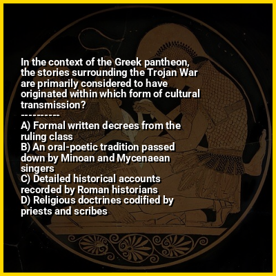 ⭐ In the context of the Greek pantheon, the stories surrounding the Trojan War are primarily considered to have originated within which form of cultural transmission?