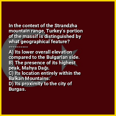 ⭐ In the context of the Strandzha mountain range, Turkey’s portion of the massif is distinguished by what geographical feature?