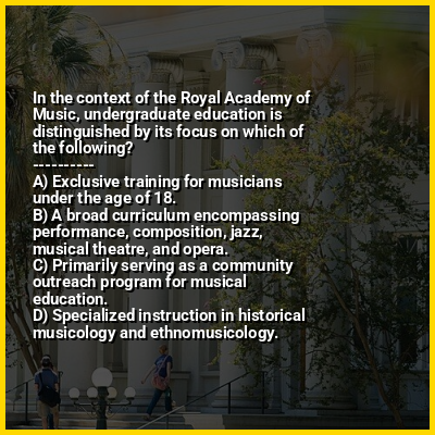 ⭐ In the context of the Royal Academy of Music, undergraduate education is distinguished by its focus on which of the following?