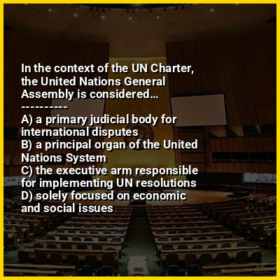 United Nations General Assembly (UNGA or GA) is one of the six principal organs of the United Nations (UN), serving as its main deliberative, policymaking, and representative organ. Currently in its 80th session, its powers, composition, functions, and procedures are set out in Chapter IV of the United Nations Charter.