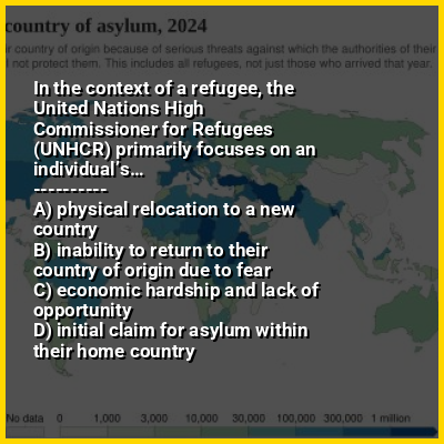 ⭐ In the context of a refugee, the United Nations High Commissioner for Refugees (UNHCR) primarily focuses on an individual’s…