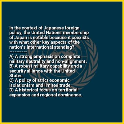⭐ In the context of Japanese foreign policy, the United Nations membership of Japan is notable because it coexists with what other key aspects of the nation’s international standing?
