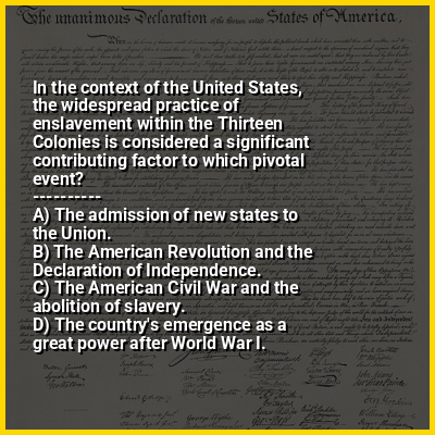 ⭐ In the context of the United States, the widespread practice of enslavement within the Thirteen Colonies is considered a significant contributing factor to which pivotal event?