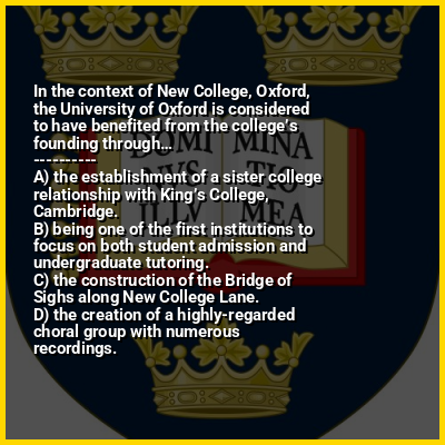 ⭐ In the context of New College, Oxford, the University of Oxford is considered to have benefited from the college’s founding through…