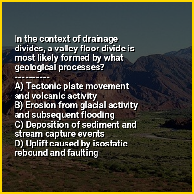 ⭐ In the context of drainage divides, a valley floor divide is most likely formed by what geological processes?