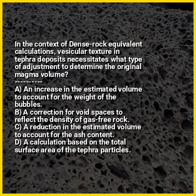 ⭐ In the context of Dense-rock equivalent calculations, vesicular texture in tephra deposits necessitates what type of adjustment to determine the original magma volume?
