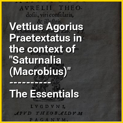 Saturnalia (Latin: Saturnaliorum Libri Septem, "Seven Books of the Saturnalia") is a work written after c. 431 CE by the Roman provincial Macrobius Theodosius. The Saturnalia consists of an account of the discussions held at the house of Vettius Agorius Praetextatus during the holiday of the Saturnalia. It contains a great variety of curious historical, mythological, critical, antiquarian and grammatical discussions.