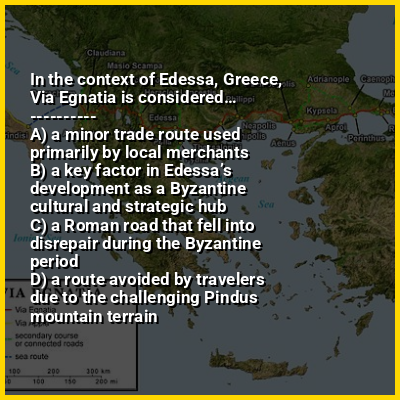 The Via Egnatia was a road constructed by the Romans in the 2nd century BC. It crossed Illyricum, Macedonia, and Thracia, running through territory that is now part of modern Albania, North Macedonia, Greece, and European Turkey as a continuation of the Via Appia.
