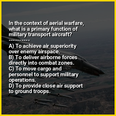 Aerial warfare is the use of military aircraft and other flying machines in warfare. Aerial warfare includes bombers attacking enemy installations or a concentration of enemy troops or strategic targets; fighter aircraft battling for control of airspace; attack aircraft engaging in close air support against ground targets; naval aviation flying against sea and nearby land targets; gliders, helicopters and other aircraft to carry airborne forces such as paratroopers; aerial refueling tankers to extend operation time or range; and military transport aircraft to move cargo and personnel.