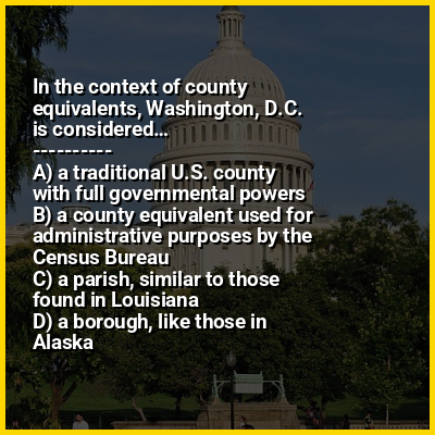 ⭐ In the context of county equivalents, Washington, D.C. is considered…