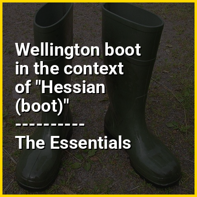 Originally a type of leather riding boot adapted from Hessian boots, a style of military foot wear, Wellington boots were worn and popularised by Arthur Wellesley, 1st Duke of Wellington. They became a staple of practical foot wear for the British aristocracy and middle class in the early 19th century. The term was subsequently applied to waterproof rubber boots ubiquitously worn today in a range of agricultural and outdoors pursuits.
